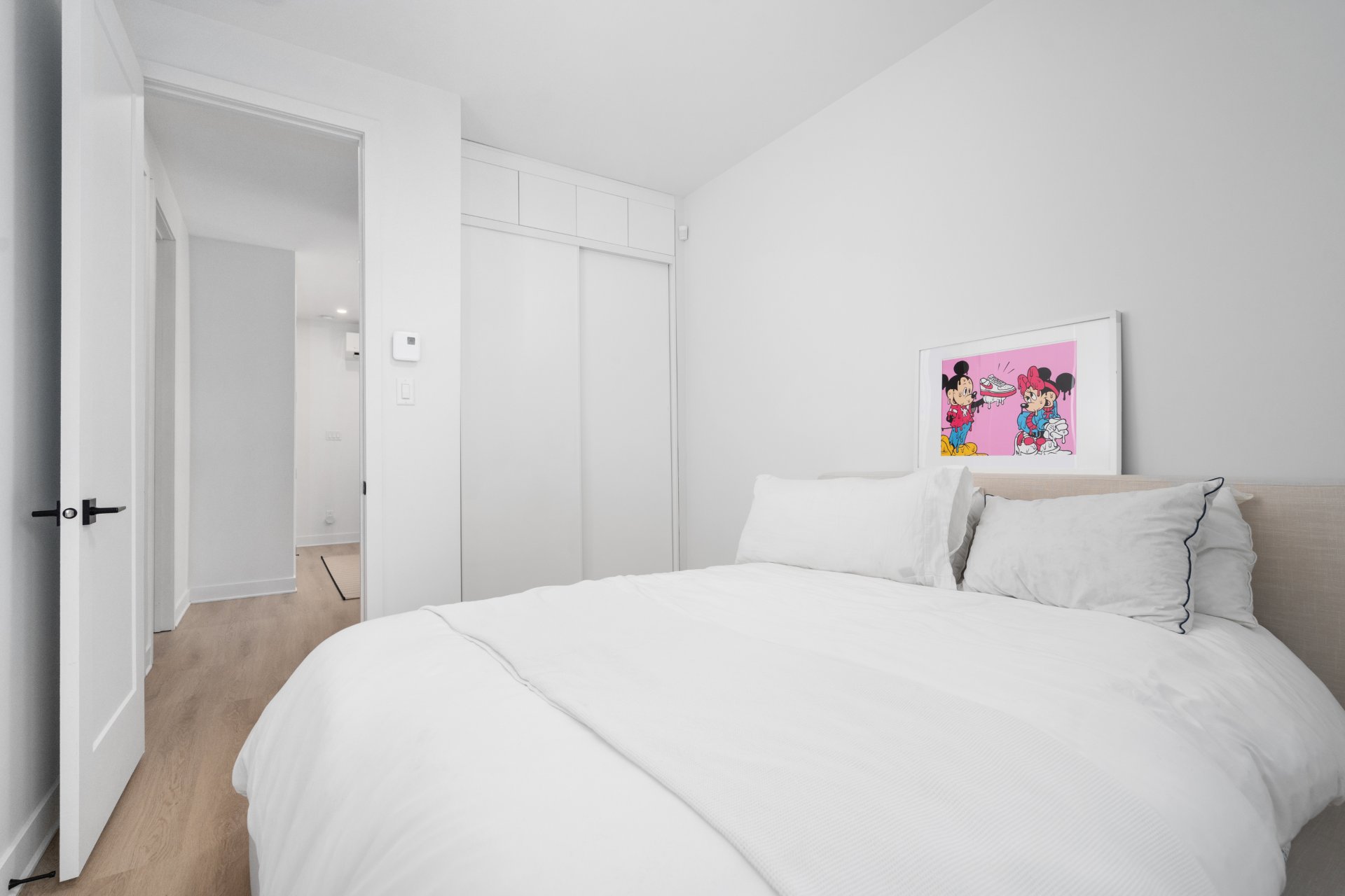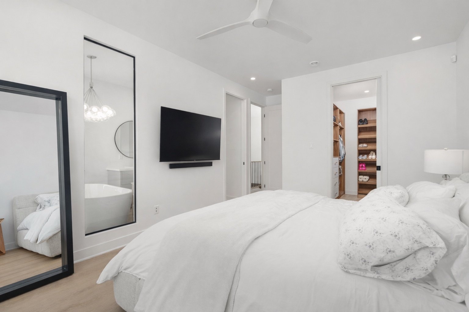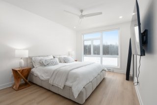 À l'étage, la suite principale comprend un walk-in aménagé sur mesure avec rangement intégré et éclairage, ainsi qu'une salle de bain attenante. Deux autres chambres de bonnes dimensions offrent un espace polyvalent pour la famille, les invités ou un bureau à domicile. Une deuxième salle de bain complète l'étage.