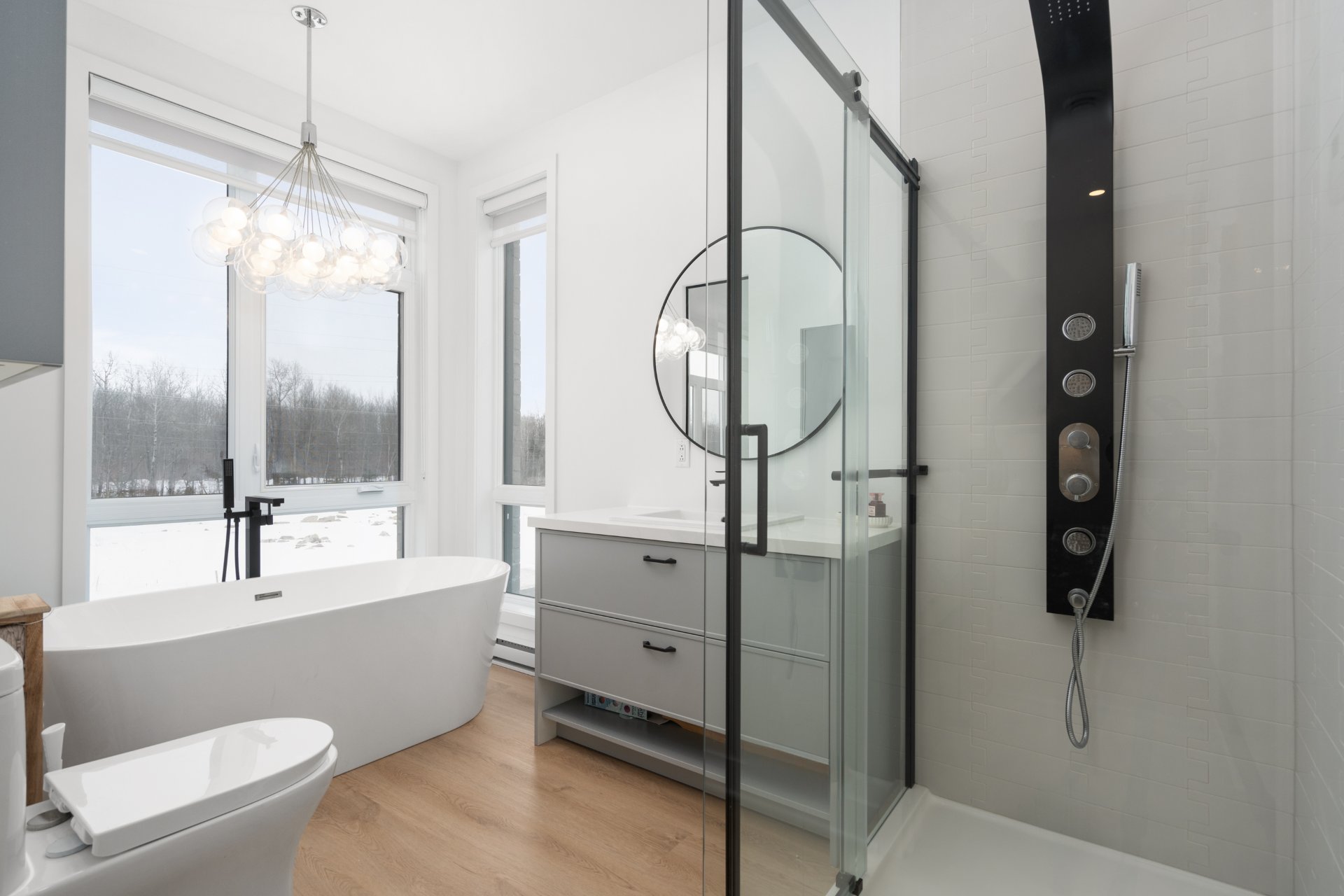 * Finitions de salle de bain améliorées incluant une baignoire