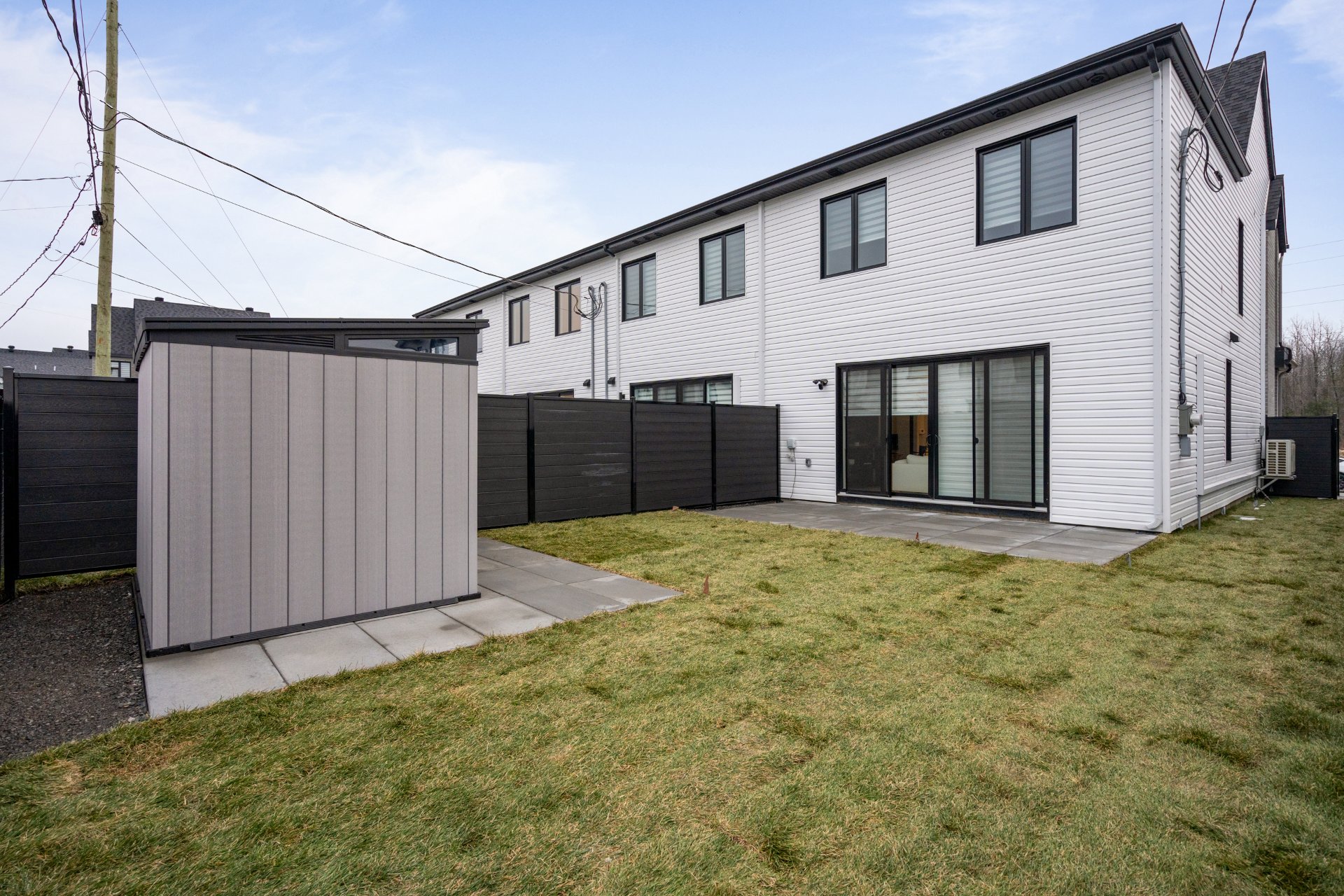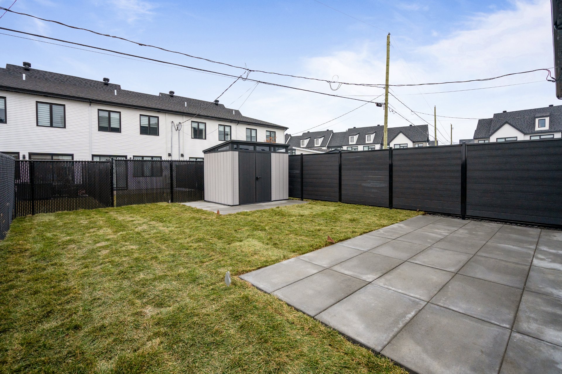 La cour arrière a été soigneusement aménagée avec aménagement paysager professionnel, pavé, clôture, système d'irrigation automatique et cabanon, créant un espace extérieur privé idéal pour se détendre ou recevoir.